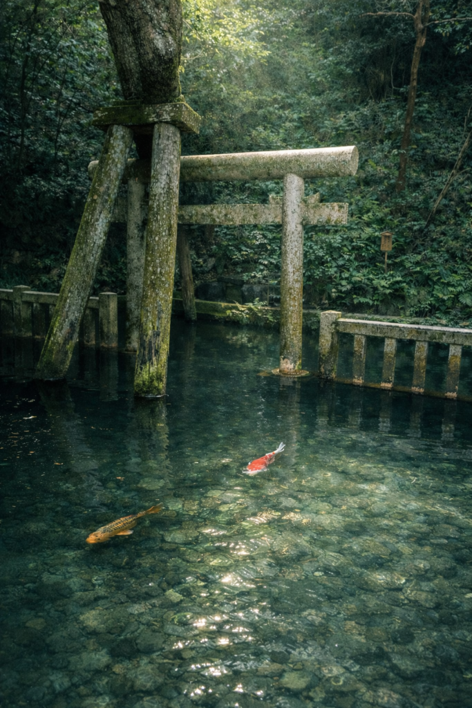 透明な水と池の中の鳥居