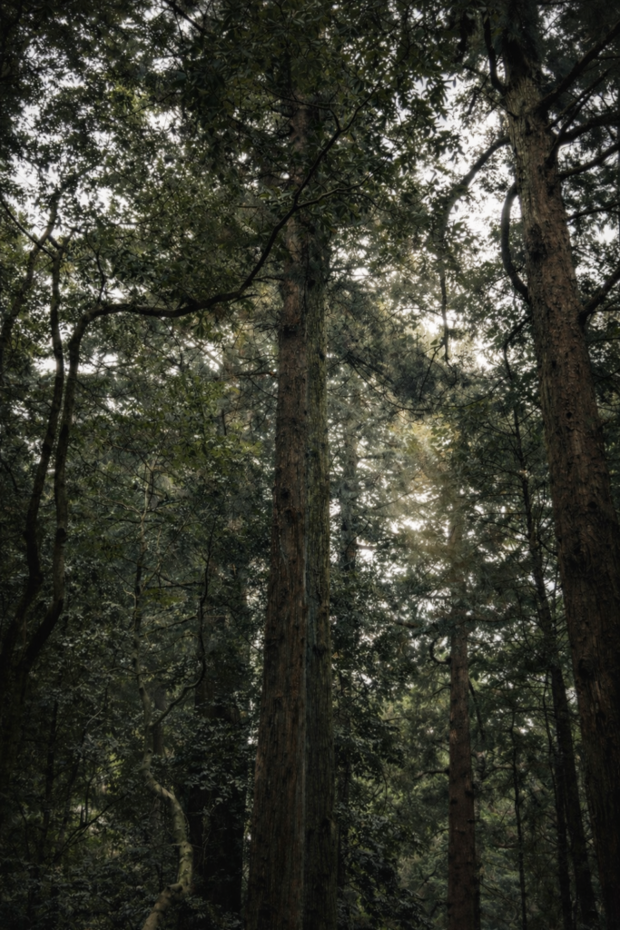 深い緑の木々と